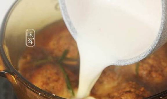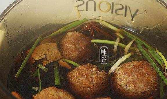 9、把炸好的狮子头放入里面炖煮20分钟;