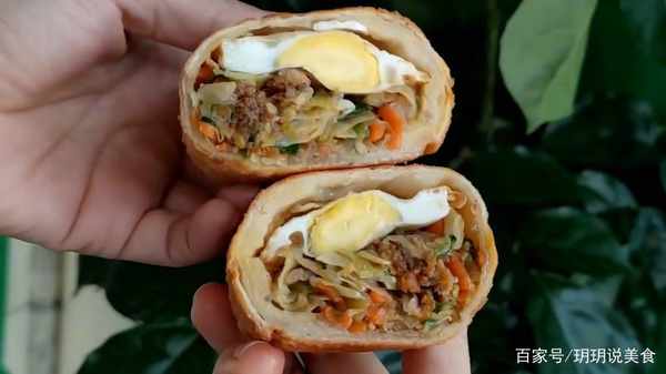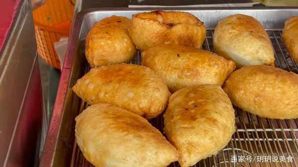 油炸饺子吃起来外皮酥脆可口,里面的鸡蛋混合着粉丝青菜一起吃味道很是奇特,两种原本没什么关联的食材混合在面皮里一起吃有一种奇妙的和谐感。这种油炸饺子每一个分量都很大,是我们平时见到的饺子的5倍左右。