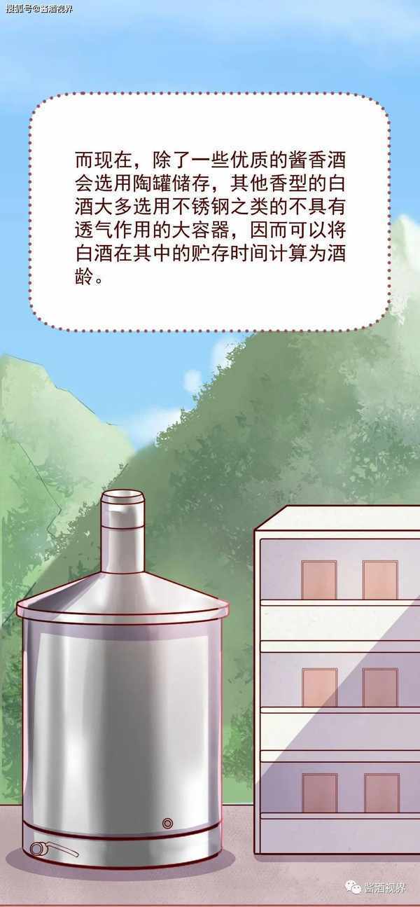 而现在,除了一些优质的酱香酒会选用陶罐储存,其他香型的白酒大多选用不锈钢之类的不具有透气作用的大容器,因而可以将白酒在其中的贮存时间计算为酒龄。