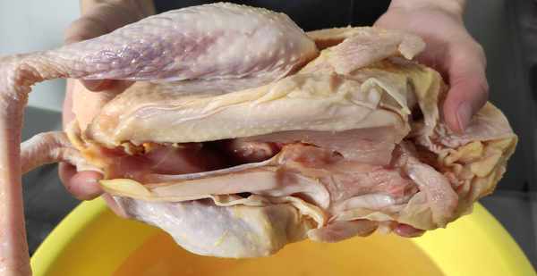 3、剁成小块的鸡肉,不着急焯水,在清水锅中多浸泡一会,大约1个小时的样子,这一步的主要作用是通过浸泡去除鸡肉中的血水和杂质;