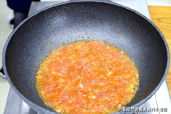 。这样煮出来的汤,色泽红润,非常的鲜美。然后,加入适量的清水,小火熬上三五分钟。把番茄汁熬浓,倒出来备用。