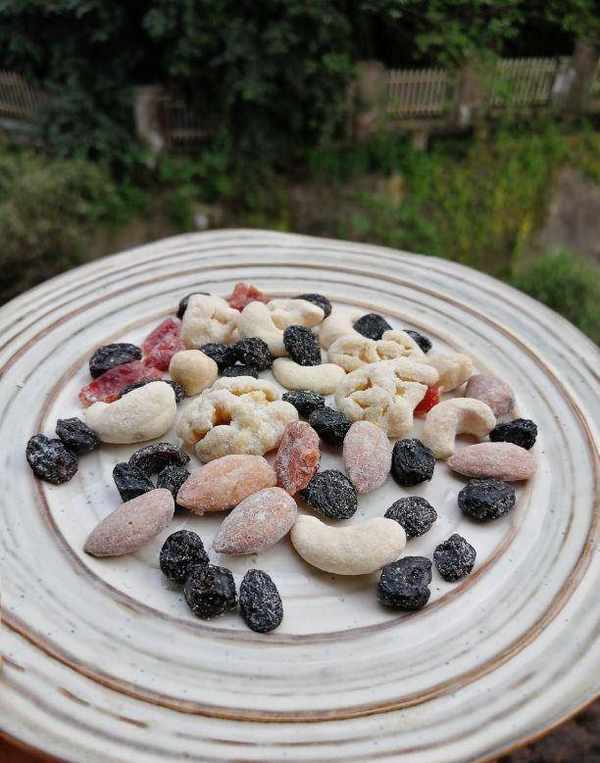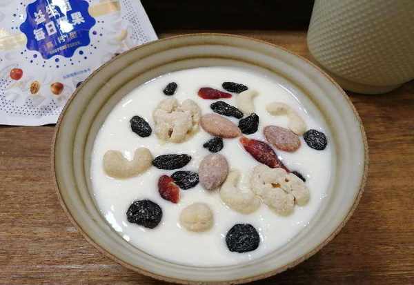 ④就是加入每日坚果,是我最近很喜欢的吃法,里边有坚果有果干,多种口感,同时补充多种营养,真正的营养又美味!