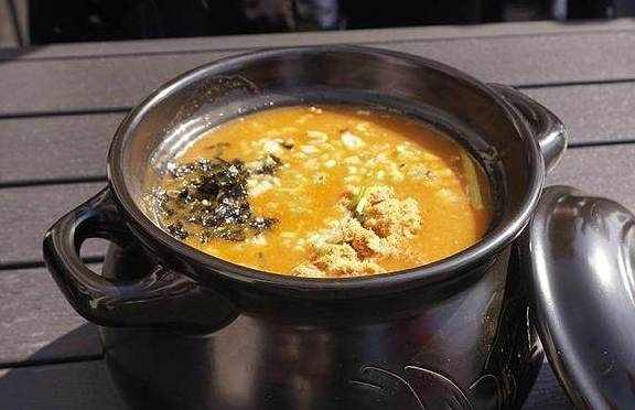 咖喱粥很独特,是口味略重但又确实好喝,一改以往粥的寡淡滋味,咖喱的浓重口味也减淡了,融合的特别好,既有咖喱味又有米粥味;