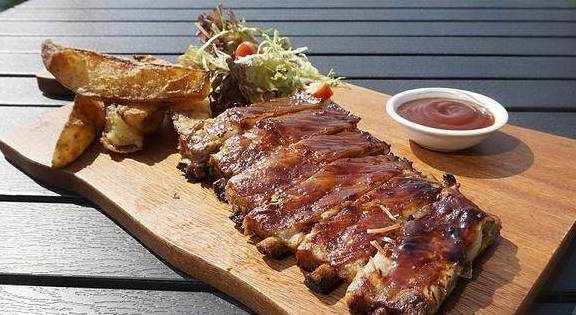 西班牙碳烤肋排,酱汁入味足但不会太过,最外面的肉质有碳烤的那种微酥脆口感很香,有点蜜汁味,里面的肉比较嫩,这种脆嫩相间的口感和咸香微甜的味道,特别好吃,值得推荐;