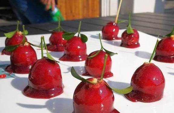 还有一款樱桃鹅肝,颜值超级高,真的像樱桃一样,吃起来是鹅肝的口味,真的很有创意。