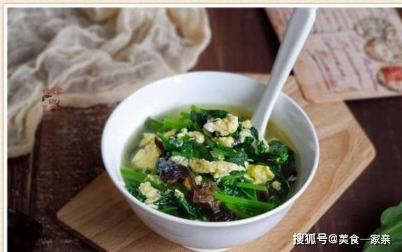 [材料]菠菜150克,鸡蛋60克,干黄花菜、木耳各30克。