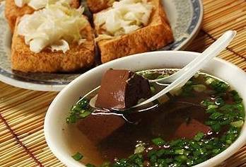 1.平菇洗净撕成小朵,;猪血洗净后划成小块,