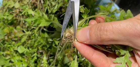 首先,准备新的荠菜,剪掉根部,去掉烂黄的叶子。