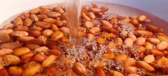 花生米煮沸后,放入锅中,加入八角、桂皮、花椒、藜芦、盐,沸腾后用中火煮20分钟,捞出放凉。