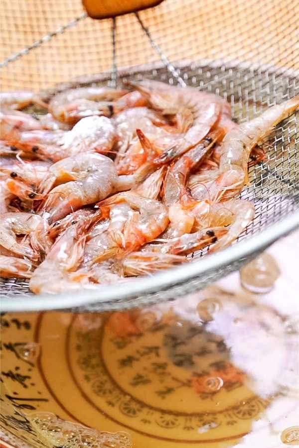 这道菜用的食材只有河虾,很简单,但是对食材的质量有一些要求,因为如果河虾不新鲜,而且有独特的气味,这道菜肯定不好吃。这。挑选小河虾时,一定要选择新鲜的河虾,颜色呈绿色,表面有光泽,壳内清澈透明。