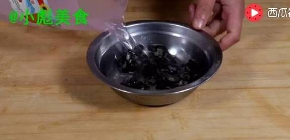 1、木耳提前倒入热水泡好。
