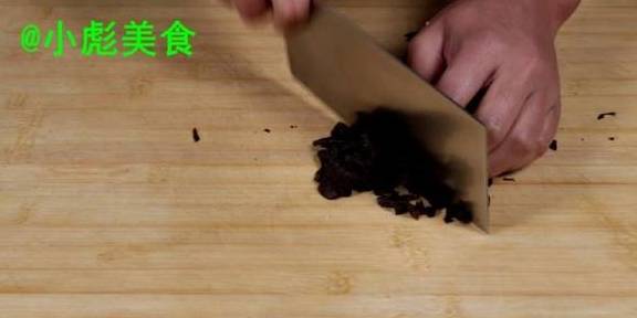 3、将木耳切成末、切成末、装入碗中备用。