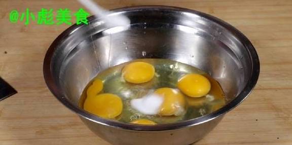 5、鸡蛋磕入盘中、来一勺盐、来三勺水淀粉。