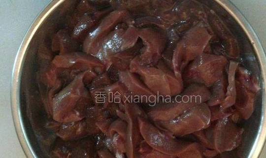4.猪肝洗净切片放入适量的生粉,生抽,料酒,胡椒粉抓匀略腌备用。