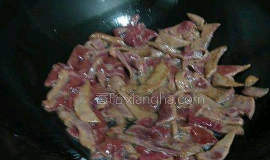 5.锅里放入适量的油,油热后将猪肝入锅滑变色盛出备用。