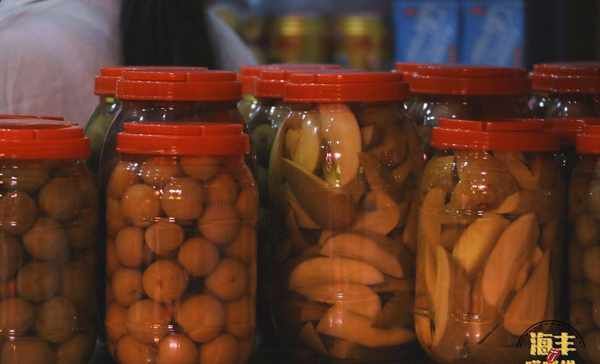 桶装的腌制水果算得上是每家必备的年货了,有客人来了之后拿出水果招待,别提多好了。