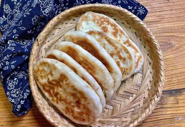 做法:面粉加盐,酵母搅拌均匀,加入水揉成硬面团,醒面20分钟。然后下成6个剂子,每个剂子搓成胡萝卜的形状,再按扁,擀长。从粗的一头往细的一头卷起,收尾,压扁,擀成碗装圆饼,平底锅烙到两面上色,放入烤箱190度烤十分钟即可。味道酥香,做过的都说好吃。