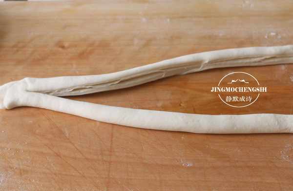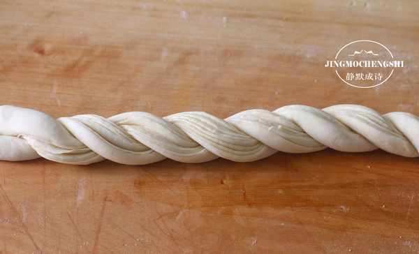 7、两股面编成麻花状,这个不需要技术的哦!然后把收口捏住。