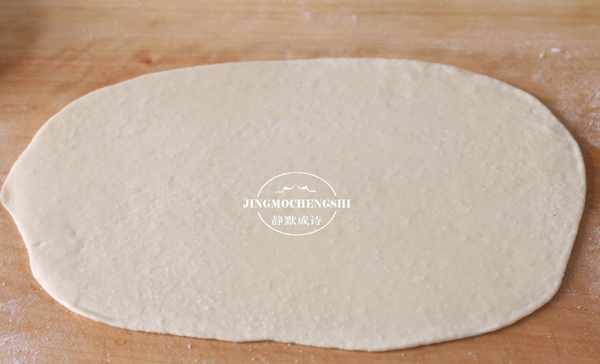 5、拿起一个面剂,擀成长方形,刷上油,撒上盐。其他面剂用湿布盖好防止风干。
