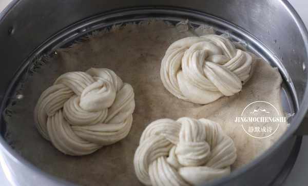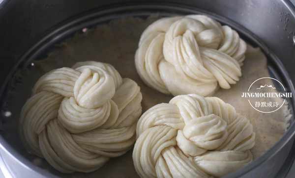 11、待花卷发酵至约两倍大时,拿起来感觉特别轻盈,开火,上汽后20分钟,关火后虚蒸两三分钟再取出。