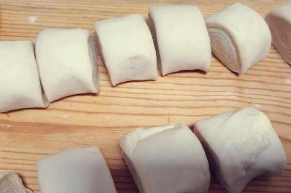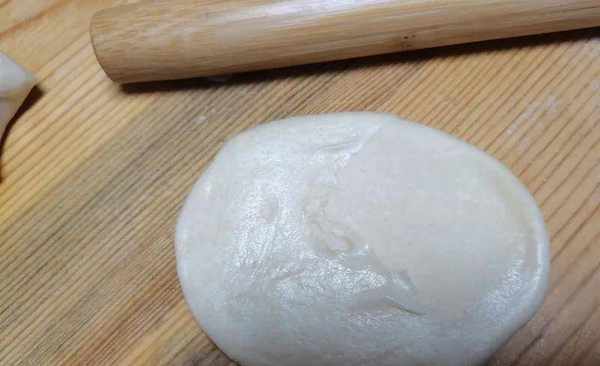 13、用擀面杖擀开。