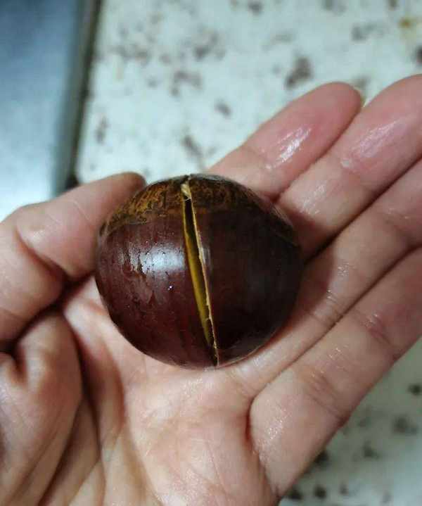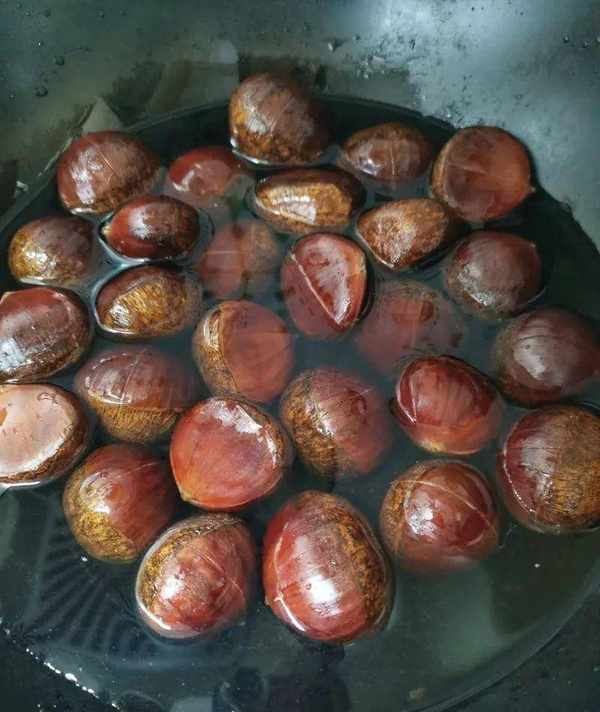 1.将栗子洗净,在每个栗子上放一把刀。