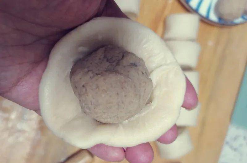 14.包好准备好的馅料。方法和包子一样。