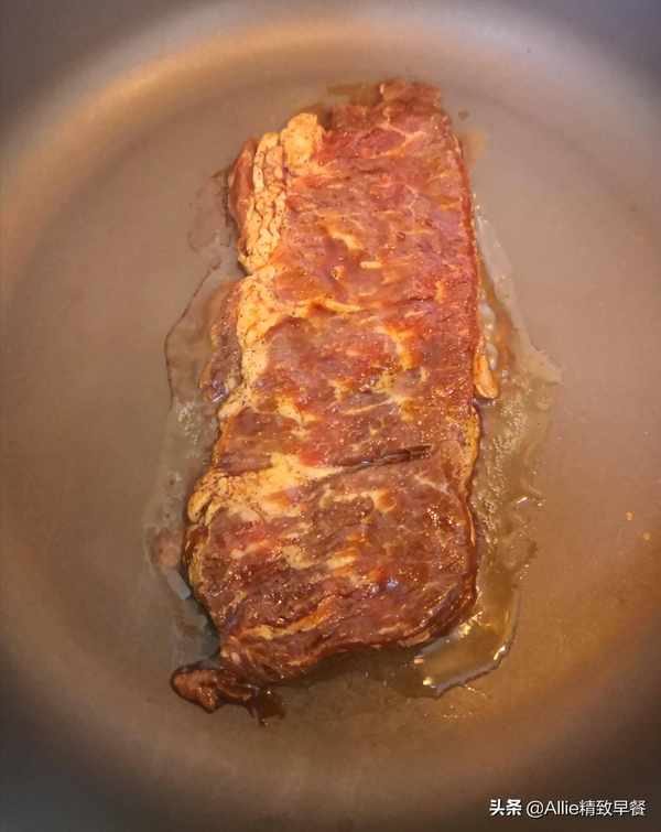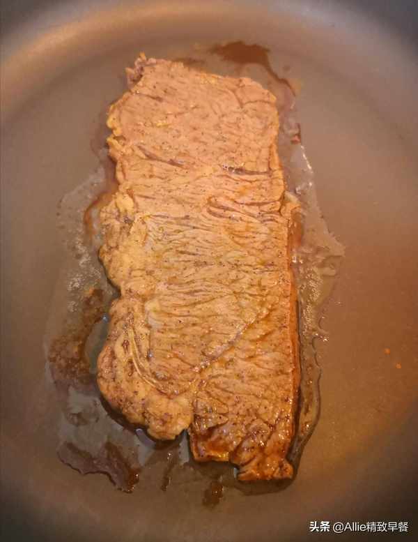 牛排,小葱,姜。调料:生抽、老抽、盐、黑胡椒、油。【实践】牛排加入葱、姜、生抽、老抽、盐和黑胡椒,拌匀腌制一夜,锅内刷少许油或黄油,煎至一侧轻微烧焦。