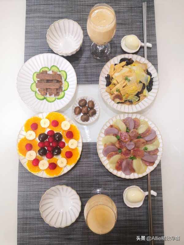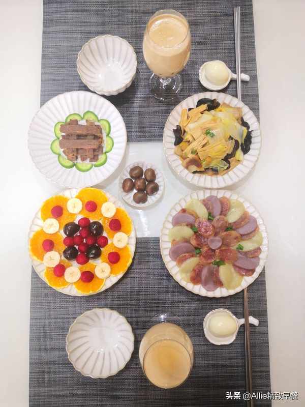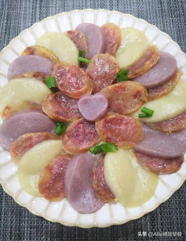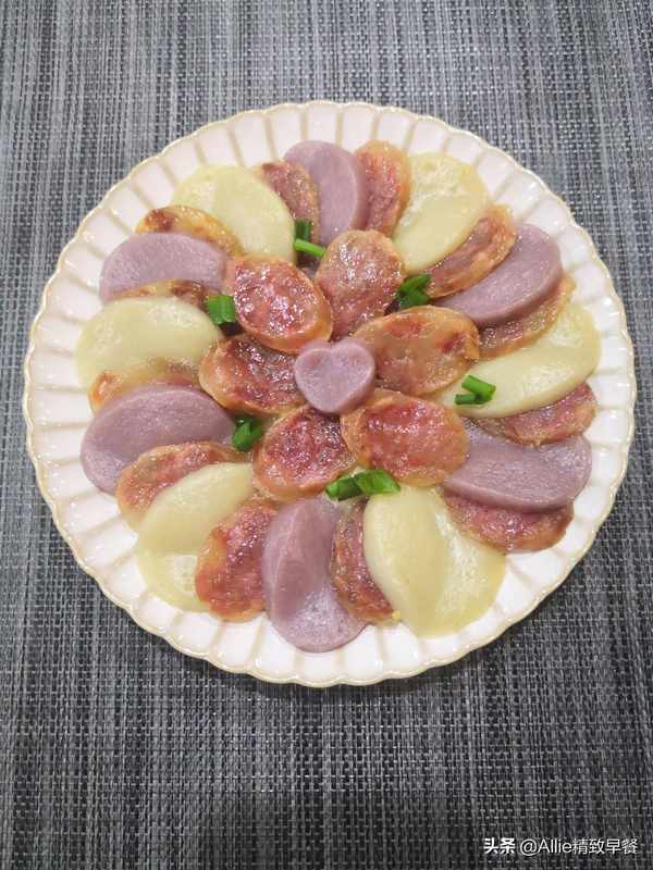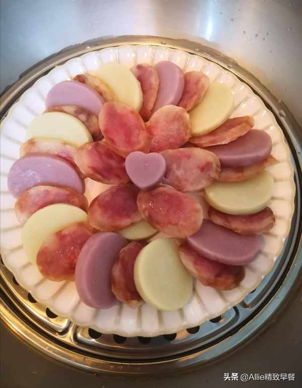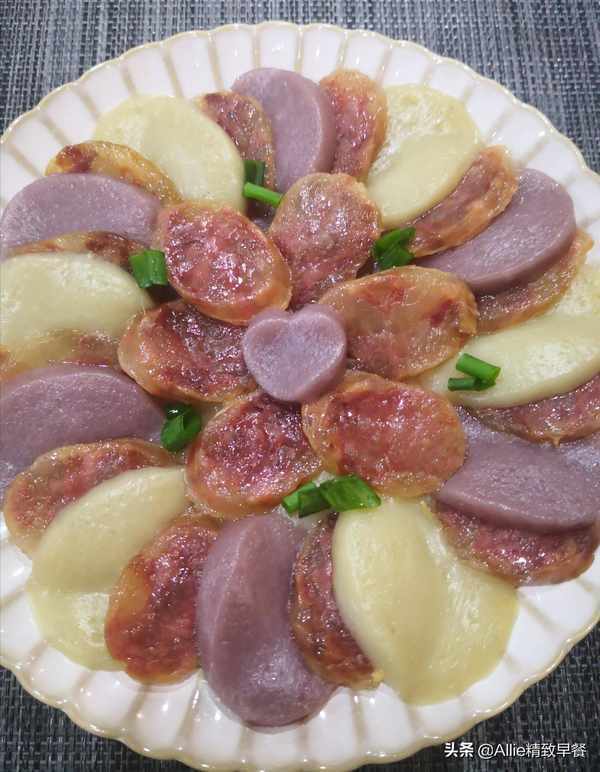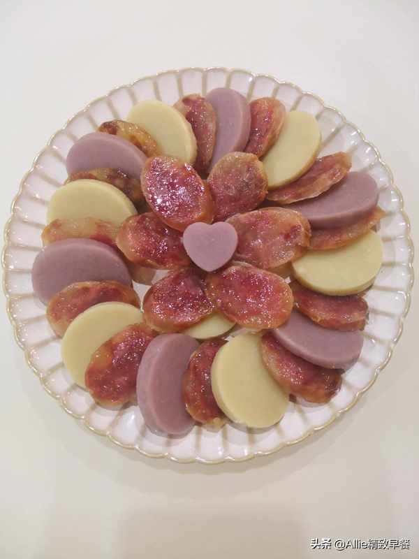 营养早餐No.241,自制七彩年糕,蒸着吃,好吃又营养大家好,我是艾莉。美好的一天从营养丰富的早餐开始。吃一顿丰盛的早餐,一整天都会精力充沛。早餐吃好,午餐吃饱,晚餐吃少,低脂、低盐、清淡饮食,这是我多年的习惯,希望和朋友们一起吃得健康、美丽、好身材今天想和大家分享一下我做的五颜六色的年糕。我使用天然成分来榨汁和揉面。它既营养又健康。它与香肠一起蒸着吃。它咸、香、软、有嚼劲。大人小孩都喜欢!