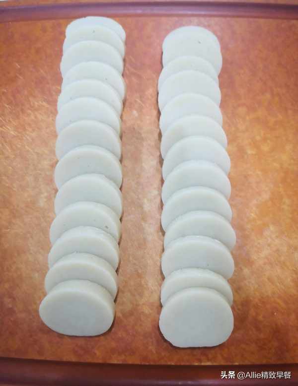 边擀边同时排列,做到上下两边厚薄均匀,卷的层数越多越紧。