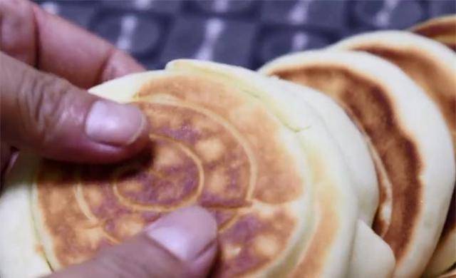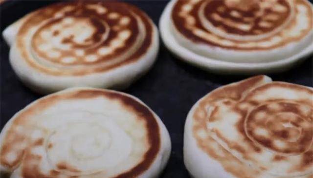 4、现在发酵好了,在电烤箱里刷点油预热,在电锅里煎饼,用手轻轻按压,在上面刷上油。蛋糕,每隔一分钟偶尔转动一次蛋糕,最后煎至两面金黄。