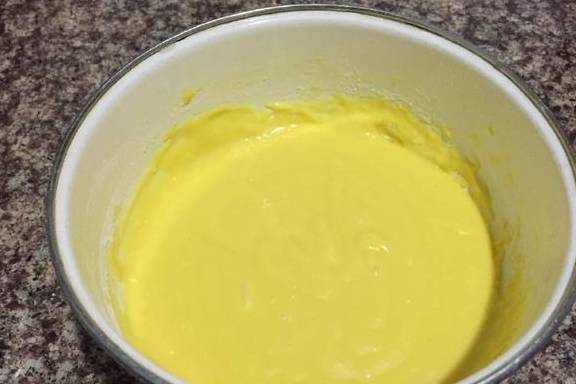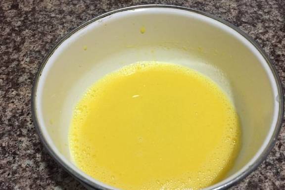 2、蛋清和蛋黄分离,蛋黄加入玉米油和牛奶搅拌均匀。
