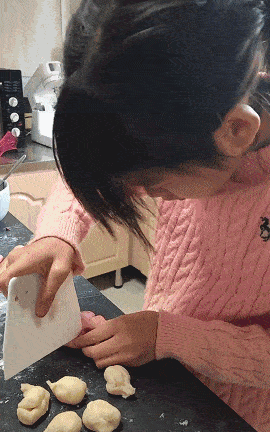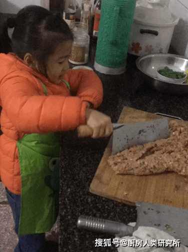 那时,她会在父母做饭时凑上前,像好奇宝宝一样问问题,还会主动操刀剁肉馅儿,一只手拿不动就两只手。