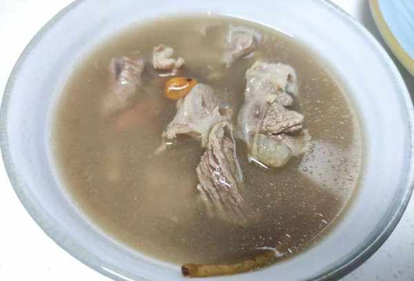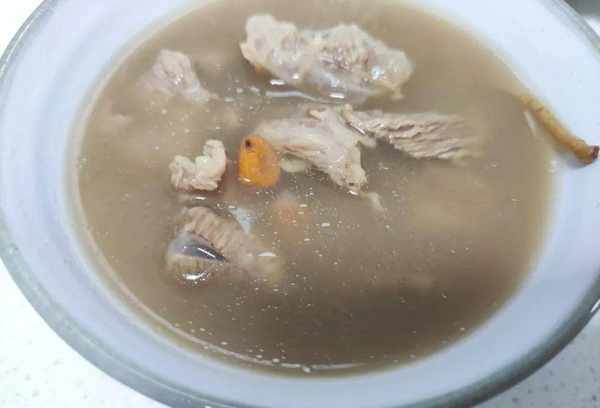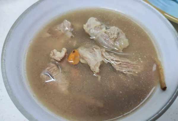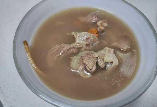 这是炖好后的牛筋汤很清爽,然后加入适量的盐。