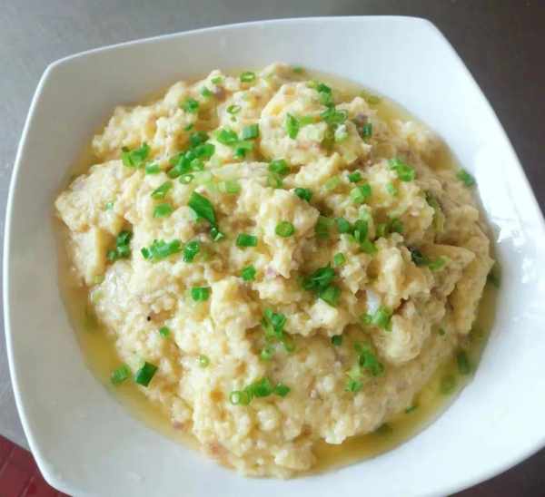 备注:原菜为水豆腐,用桂东高山泉水手工自制的豆腐,清炒而成后洒上葱花,过于普通,且如不利于保存和运输。