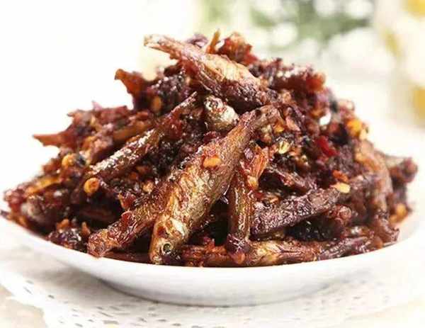 用桂东独有的沉香鱼,把鱼炸香后,加辣椒粉、姜炖制(或清炒辣椒等其他做法),加浇桂东特制麻油。麻辣鲜香,味道浓郁,开胃送饭。喻年年有余、如鱼得水。