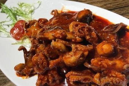 哈哈,这道酸辣鱿鱼特别值得一说。我们寝室有个室友在班级里的外号就是“鱿鱼”,每次出门吃这道酸辣鱿鱼,我们几个人都会在吃之前对着那个室友说一句“我要吃你了”。酸辣鱿鱼味道极其鲜美,每次我们都吃不够。