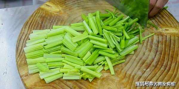 首先我们先准备一下食材,芹菜一把,洗净处理干净,比较粗的可以从中间划开,然后切成两厘米左右的段。