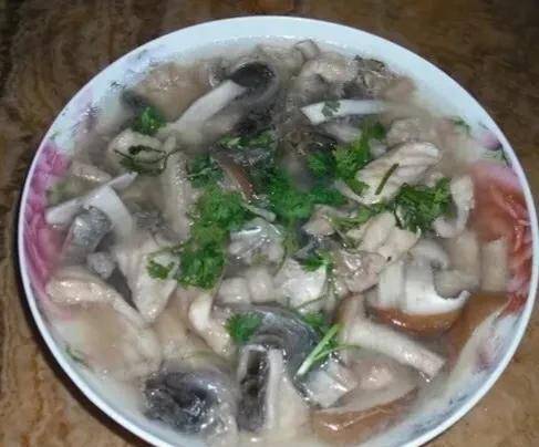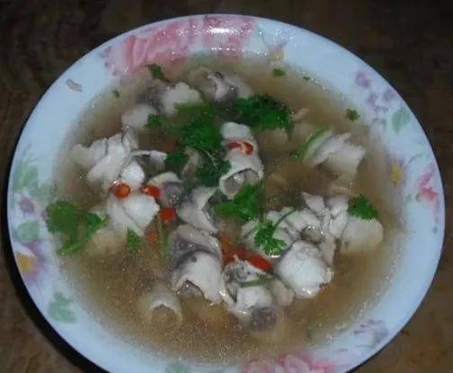 滑鱼:做成鱼丸、鱼皮、鱼肉少刺,拌入红薯粉、盐、鸡精,香菇切几片,放入热水锅中。水开后,拌匀将鱼皮和鱼肉放入锅中,烧开起锅。加香菜,很好吃。