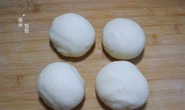 4.把蛋糕翻过来,分成4等份。将数百克面粉分成几份。这里有400克面团,分成4份就够了。