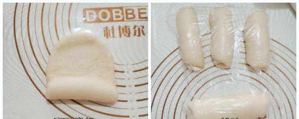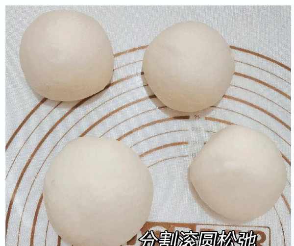 4.取出分割,均等分成3份165克和1份250克面团,滚圆松弛