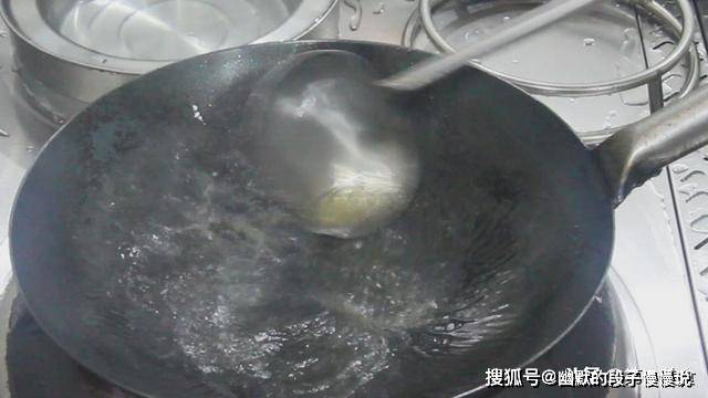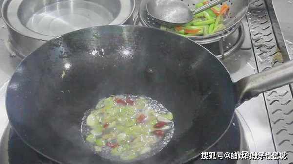 锅内烧油,烧至冒青烟,滑锅后倒出热油,加入凉油。这是一个比较重要的窍门,热锅凉油,才能在煎豆腐时,豆腐不会粘锅。