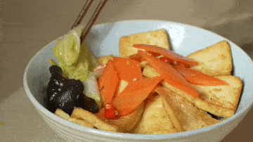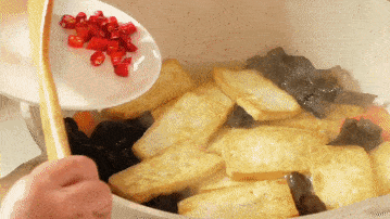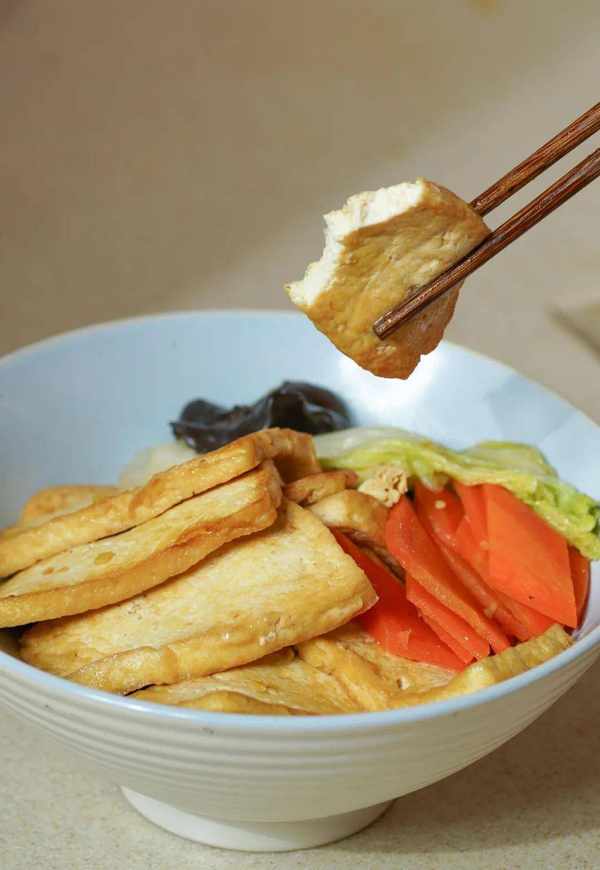 小火的炖煮下使豆腐的每一个孔都吸饱了汤汁。