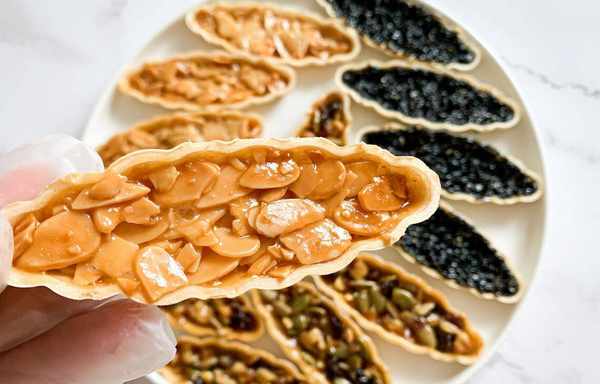 但坚果的加入却能降低饼干热量,同时丰富口感,提升食用价值。比如这款糯米船,船型饼干中装满不同种类的坚果,独特的造型十分吸睛。一半饼干一半坚果的组合,补充营养的同时又不担心热量超标。