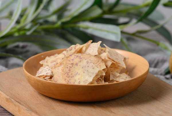 香芋片就是其中的“佼佼者”。它在制作时,选用新鲜芋头切成薄片后喷油烘烤。原切的做法最大限度避免芋头营养成分的流失,保留香芋片的原汁原味。