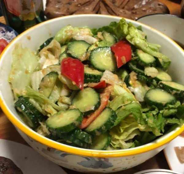 这两盆大菜就已经占据半张桌子,鸡肉牛肉都特别多,分量十足,少说也要两三百块钱。剩下的就是一些开胃小菜,可以让家里几个男人配着喝点小酒谈谈心事。皮冻QQ弹弹很爽口,裹上蒜泥一口下去,直击味蕾,又开胃又解馋,虽然是肉但是不油腻,有素菜的清爽感。