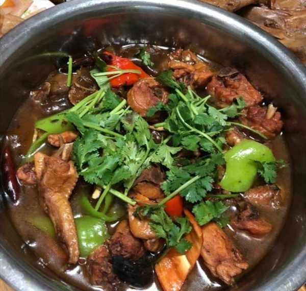 阿芳首先准备了两盆大菜,一个是炒鸡一个是红烧牛排。山东人爱吃炒鸡,新鲜的鸡斩成块,加上大酱青红椒一起翻炒,再加水焖熟,一股浓郁的酱香味迎面扑来,鸡肉鲜嫩多肉而且煮得很入味,汤汁浓郁可以配米饭吃,一大盆鸡肉很受大家的欢迎。