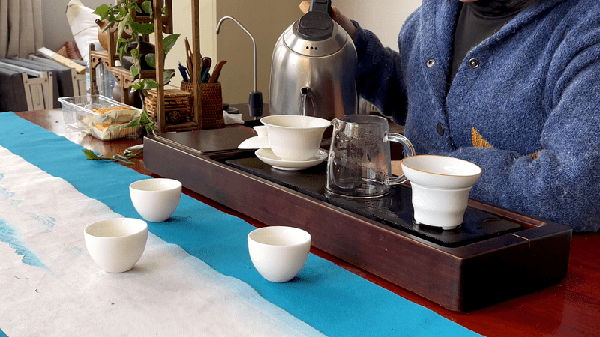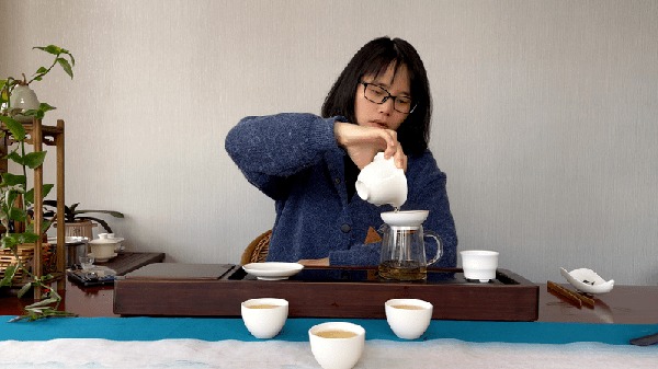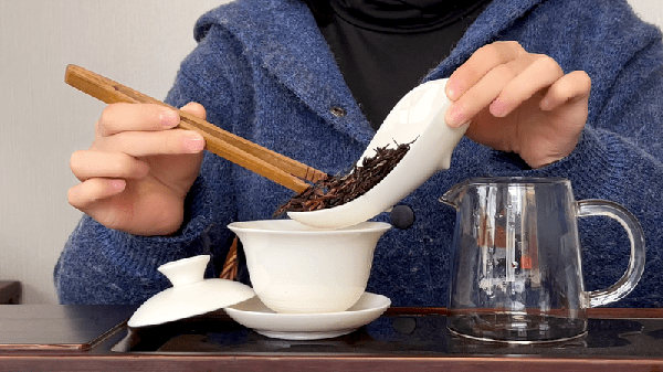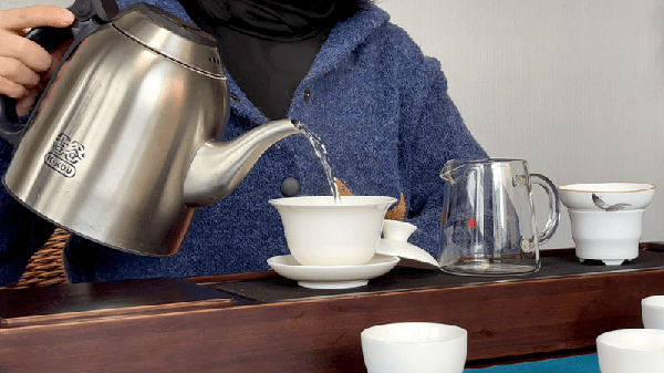 这款茶我们选用常规的冲泡方式就可以了,我们选用这个盖碗冲泡,冲泡之前我们先来温杯,温杯的话可以很大程度的激发茶叶的香气。
