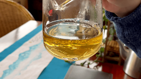 第二泡依然5秒左右出汤,看一下我们这个茶汤,很清澈。