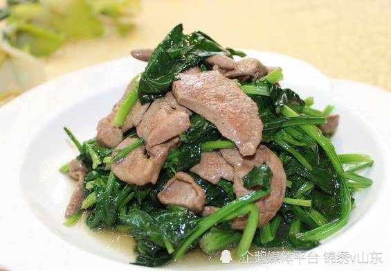 最后加入焯过水的菠菜翻炒均匀即可。猪肝补血,菠菜补铁,两种食材是很好的搭配,很适合春季吃的家常菜。